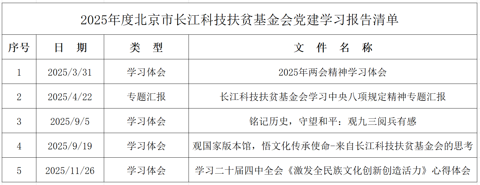 2025年度北京市长江科技扶贫基金会党建学习报告清单