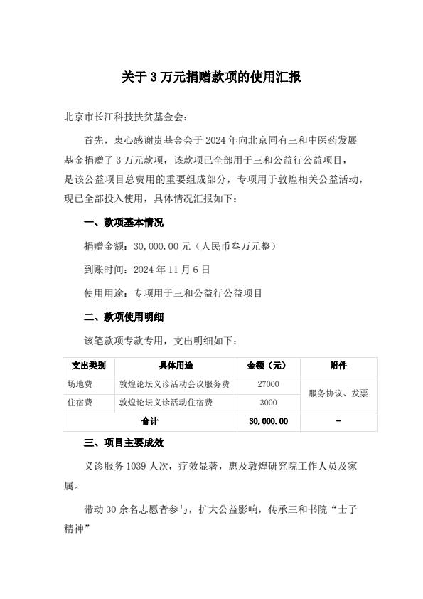 关于 3 万元捐赠款项的使用汇报