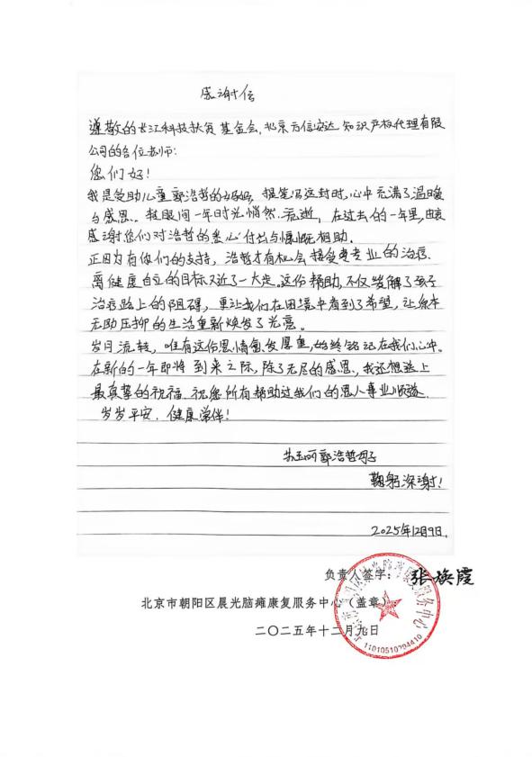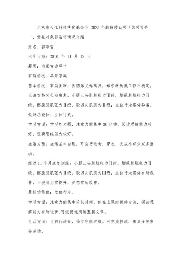 北京市长江科技扶贫基金会2025年脑瘫救助项目结项报告